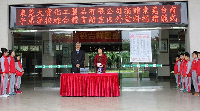 東莞大(da)寶化工(gong)對東莞檯(tai)商(shang)子(zi)弟(dì)學(xué)校新(xin)建(jian)體(ti)育館油漆捐贈儀式(shi)