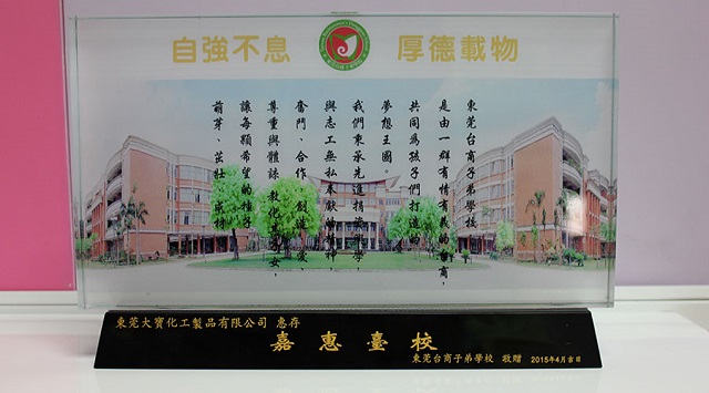 學(xué)校贈送東莞大(da)寶化工(gong)紀念品(pin)
